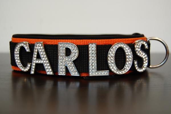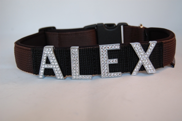 Absolute Neuheit ist unser Hundehalsband mit grossen Strassbuchstaben (34mm Höhe).