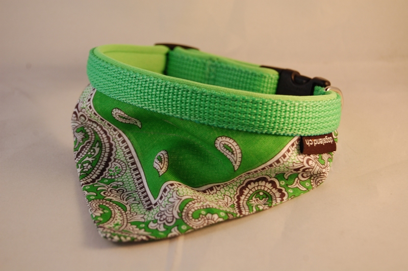 Das Hundehalstuch hat einen stabilen Klickverschluss (wie bei Hundehalsbändern).