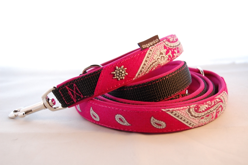 Auf das Glarner Hundehalstuch können bei Bedarf Edelweiss Nieten (Sfr. 2.00 pro Stk.) oder eine Wunschbestickung (SFr. 10.00) angebracht werden, bitte unter Sonderwunsch eintragen.