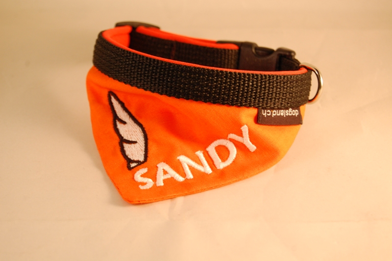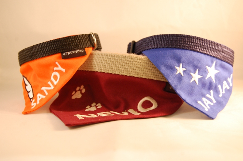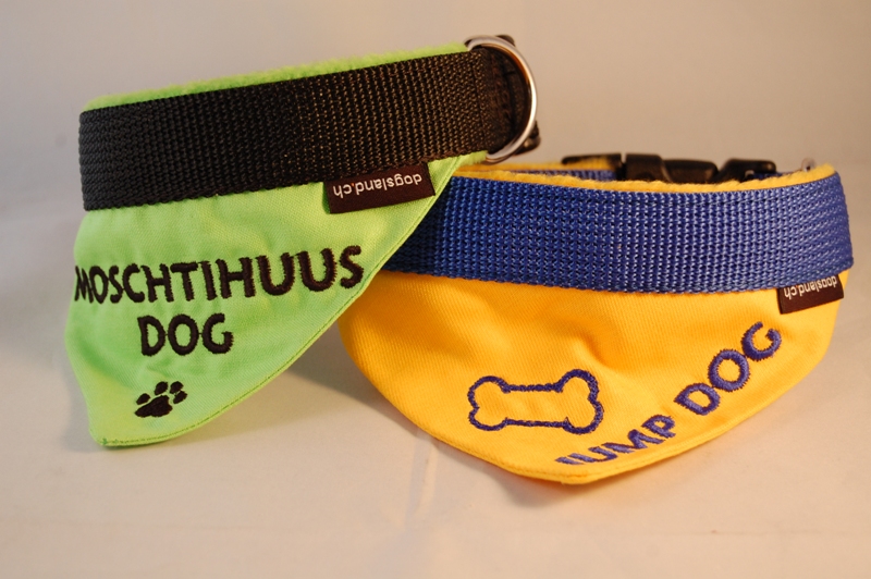 Unser Hundehalstuch mit integriertem Hundehalsband wird nach den Massen Ihres Vierbeiners gefertigt.