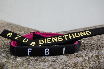 Der Clou dabei ist ,dass Sie die Texte selbst bestimmen die auf das Halsband, Leine, Geschirr kommen soll.