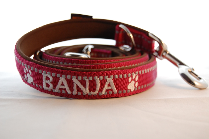 Zusätzlich besticken wir die Leine nach Ihren Wünschen: Pfoten, Name, Tel.