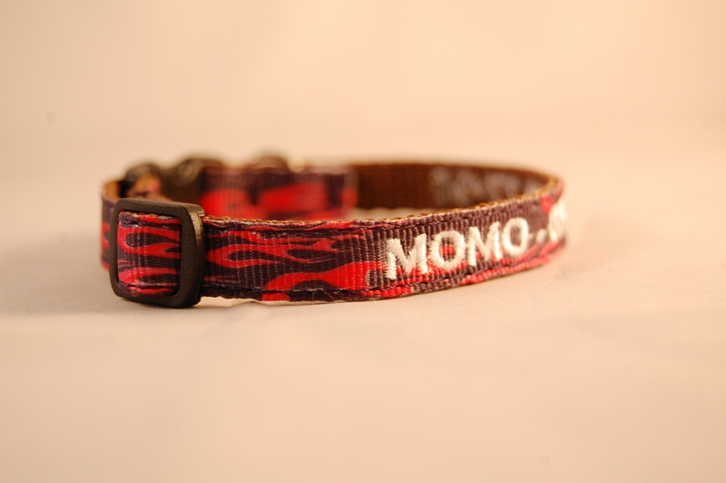 Katzenhalsband Racing Flames ist auch ohne Bestickung erhältlich.