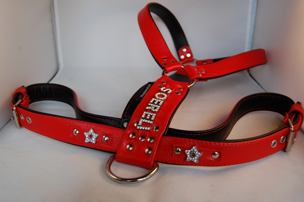 Sie entscheiden welche Nieten, Applikationen, Swarovski-Steine auf das Geschirr Ihres Hundes kommen.