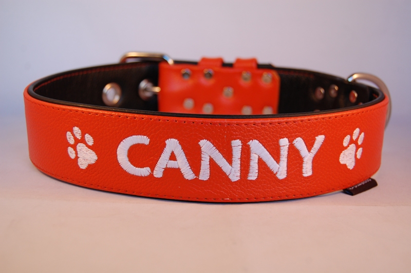 Bestickt mit Ihrem Wunschtext, wie z.B. Name, Tel., Pfötchen ist dieses Halsband ein absolutes Unikat.