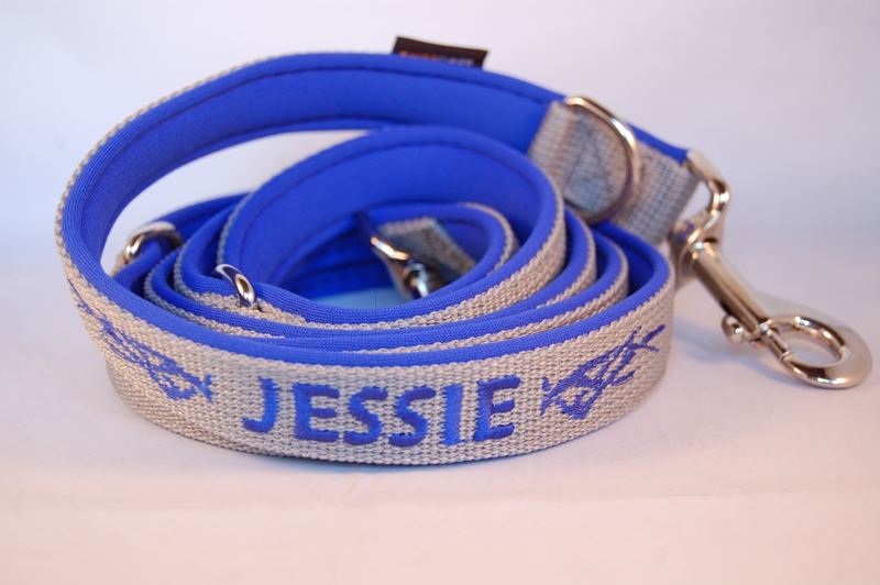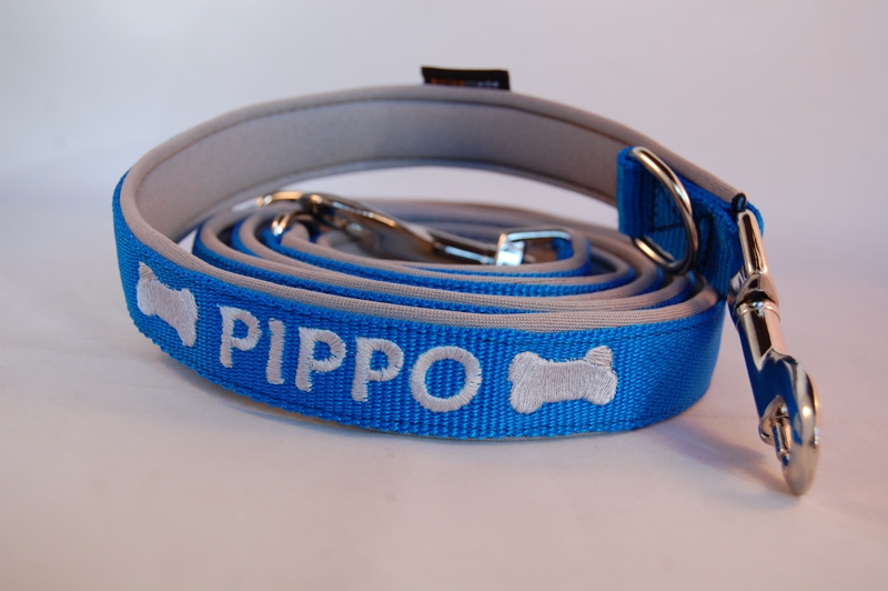 Zusätzlich besticken wir die Leine nach Ihren Wünschen: Pfoten, Name, Tel.