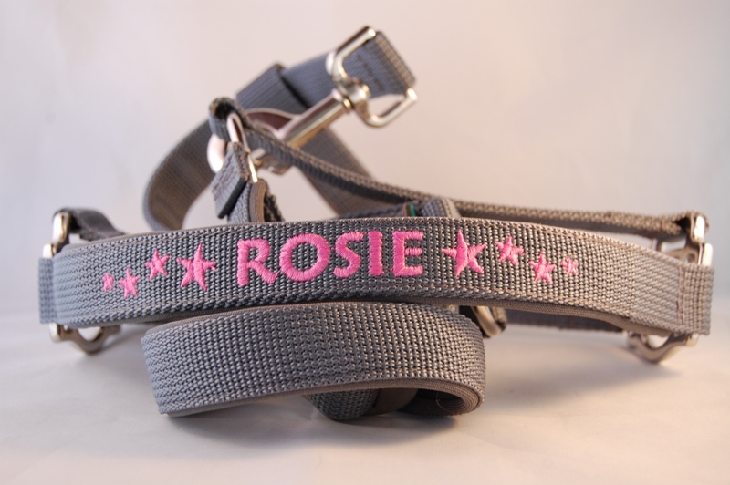 Bestickt mit Ihrem Wunschtext ist das Halfter ein Unikat.
