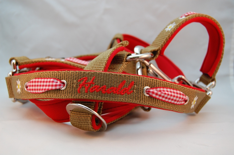 Das dogsland Pferdehalfter Alpenstil mit Name wird individuell nach Ihren Wünschen gefertigt.