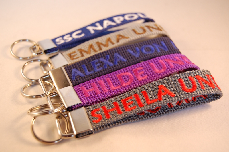 Ein echter hingucker sind unsere Schlüsselanhänger aus weichem Gurtband.